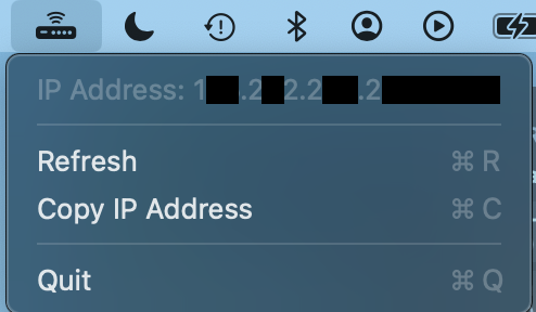 ShowMyIPAmit1 ratingA basic MacOS menu bar app that shows the user's public IP address.$0+0usdVersion 1The first version of the app and the most basic.Option to copy and refresh the IP.$0+0usdVersion 1.0.1Fixed `ifconfig.me` html error, now showing from a more reliable source: `api.ipify.org` that only contains the user's IP Address in a text format.20usdName a fair price:$Add to cartAdd to wishlist New wishlistShare on XShare on Facebook Copy linkCopy product URLRatings5(1 rating)155 stars100%4 stars0%3 stars0%2 stars0%1 star0%